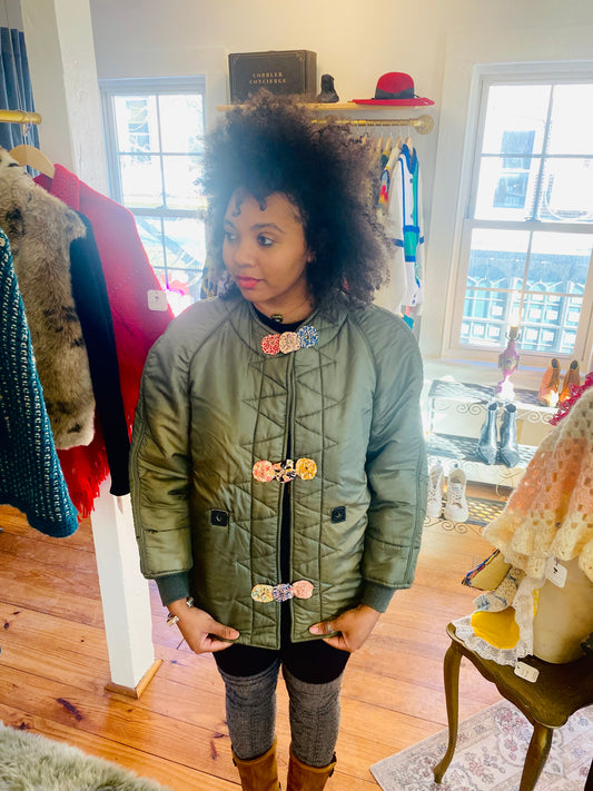 Army Liner Jacket w/ Floral Fasteners