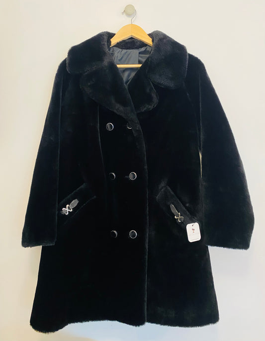 1970s Double-Breasted Black Faux Fur Coat