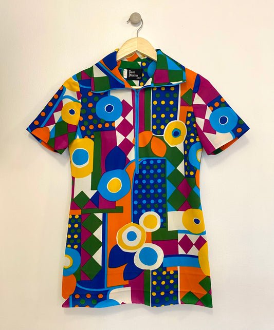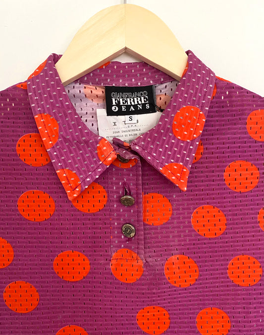 GIANFRANCO FERRE JEANS, Y2K MESH PURPLE/ORANGE POLKA DOT SS SHIRT
