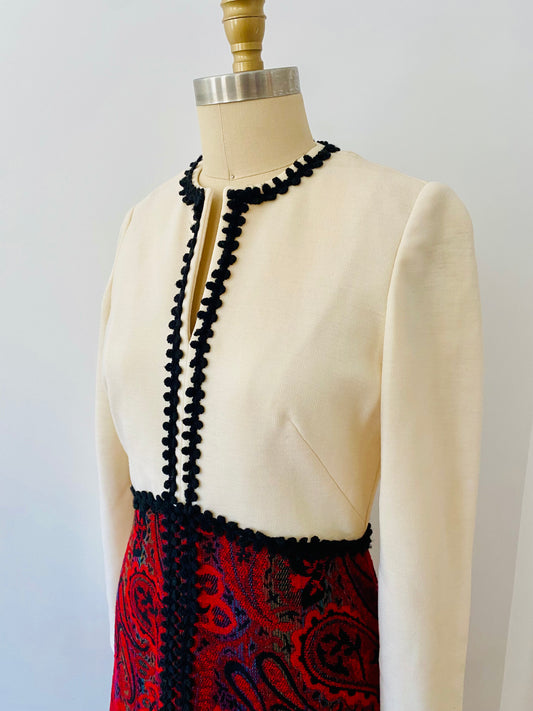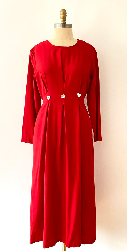 WILLOW RIDGE, 1980s SWEETHEART RED LS DRESS W/ TIE