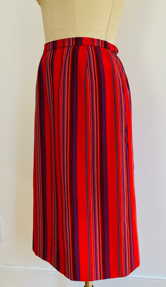LANVIN, 1970s RED STRIPED KNEE LENGTH SKIRT
