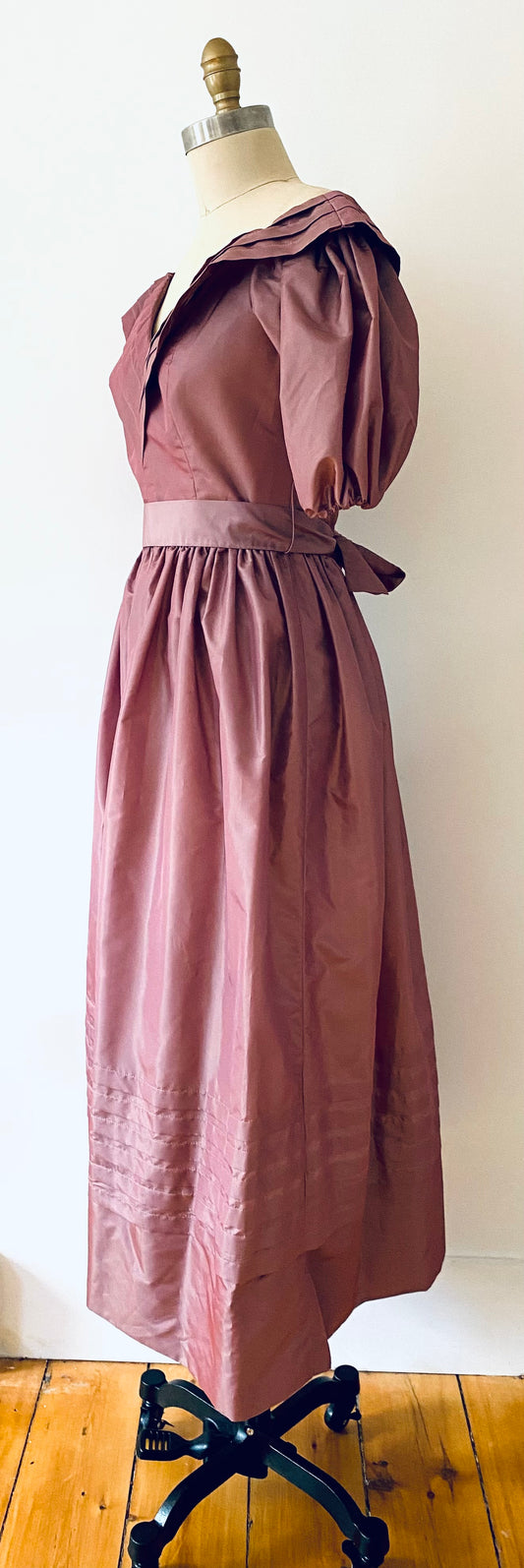 VICTOR COSTA, 1970s DUSTY PINK PUFF MID-SLEEVE DRESS