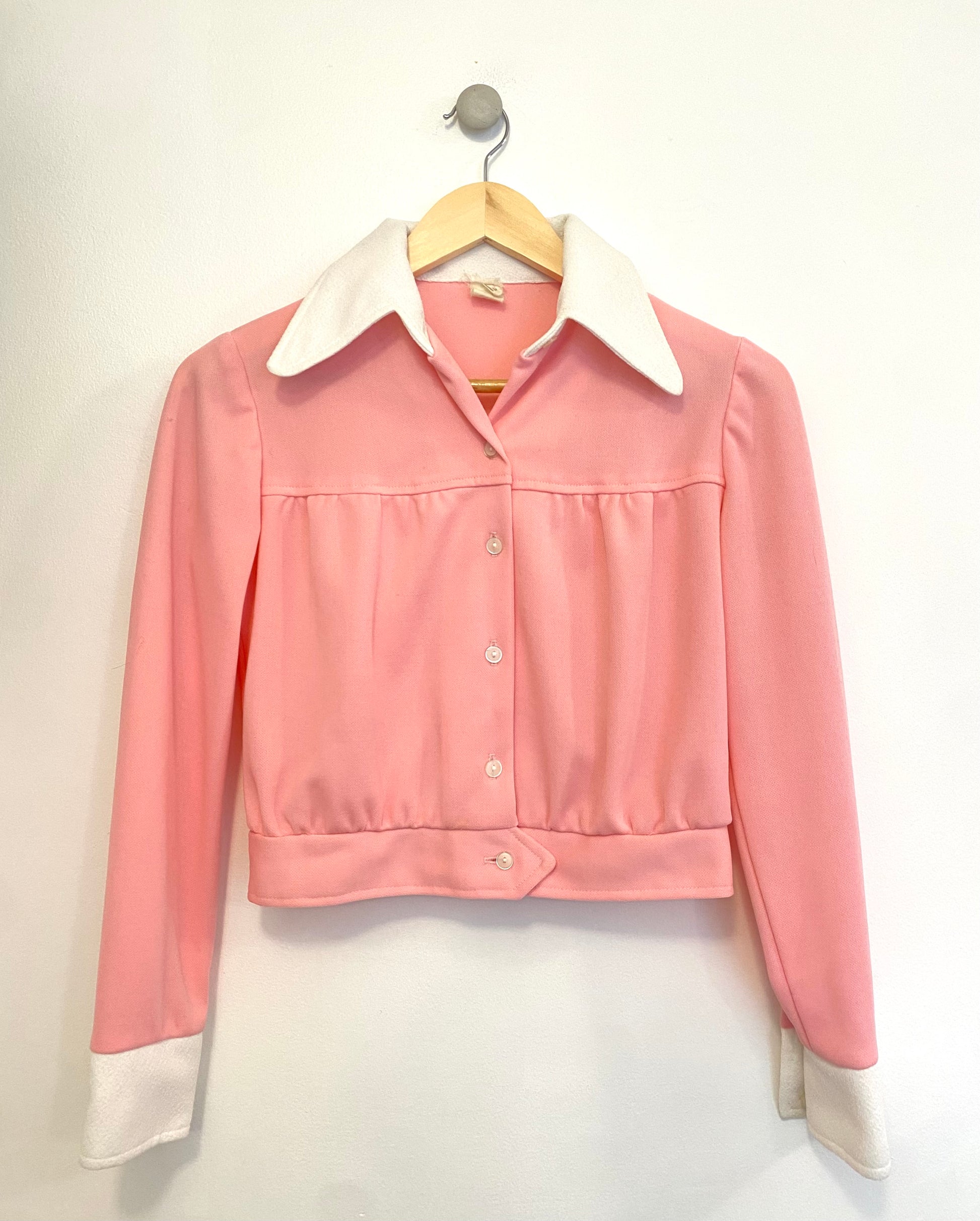 Vintage 1970s pink blouse with white cuff/collar